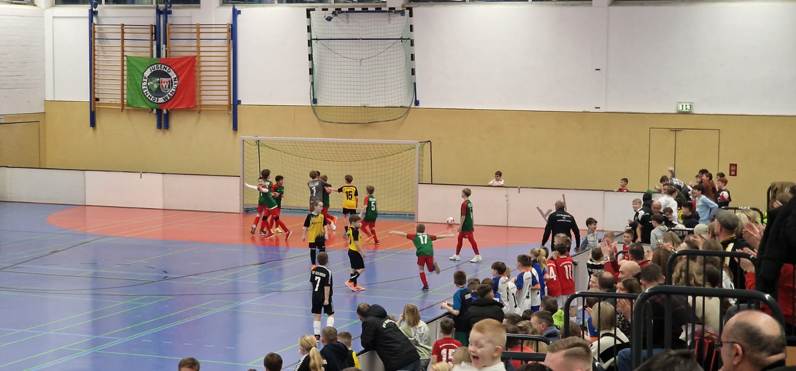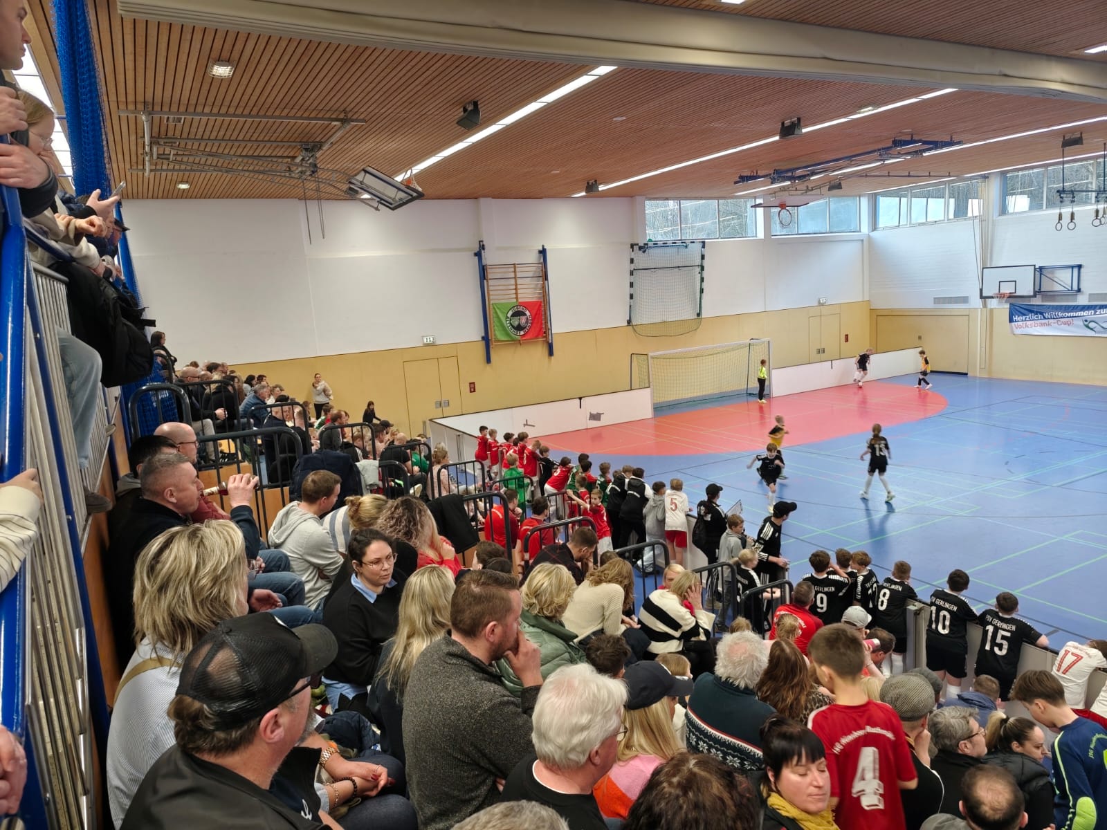 Nach der F-Jugend folgte das Turnier der E-Jugend, wo auf den Gemeindepokal-Sieger der Wanderpokal wartete. Auch hier waren die Ränge der Halle voll und auch die Stimmung war sensationell.